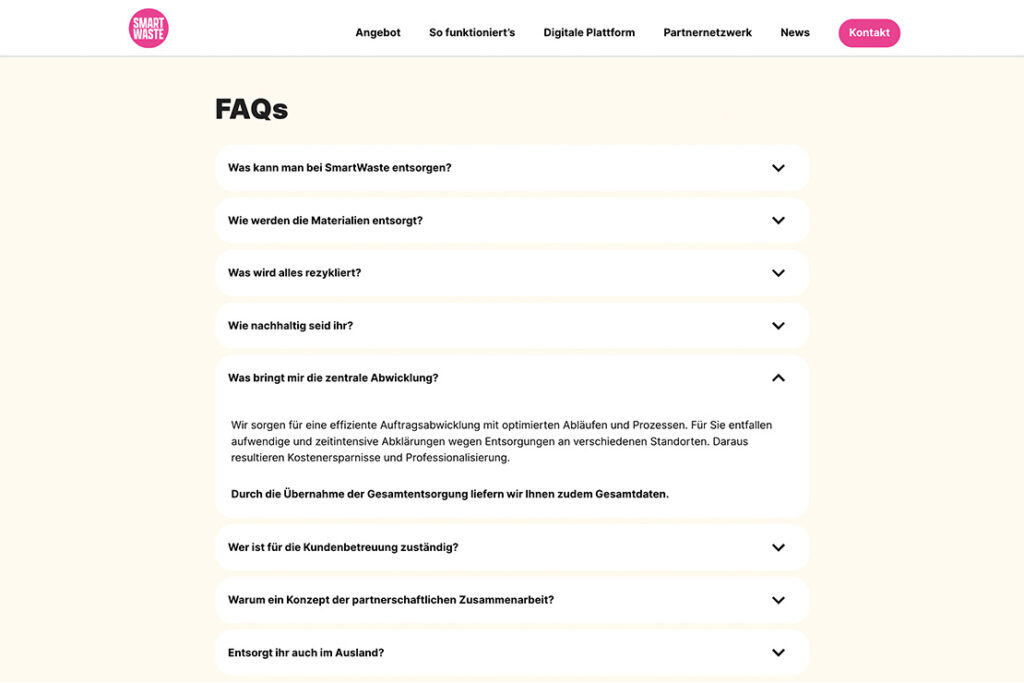 Pink wirkt frisch und lebendig. Genau das ist die Philosophie von SmartWaste. Die Marke hebt sich bewusst ab in einer Branche, die sonst oft grün, rot, gelb oder orange denkt.